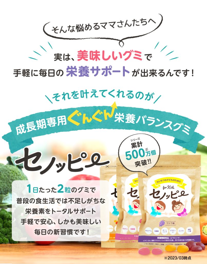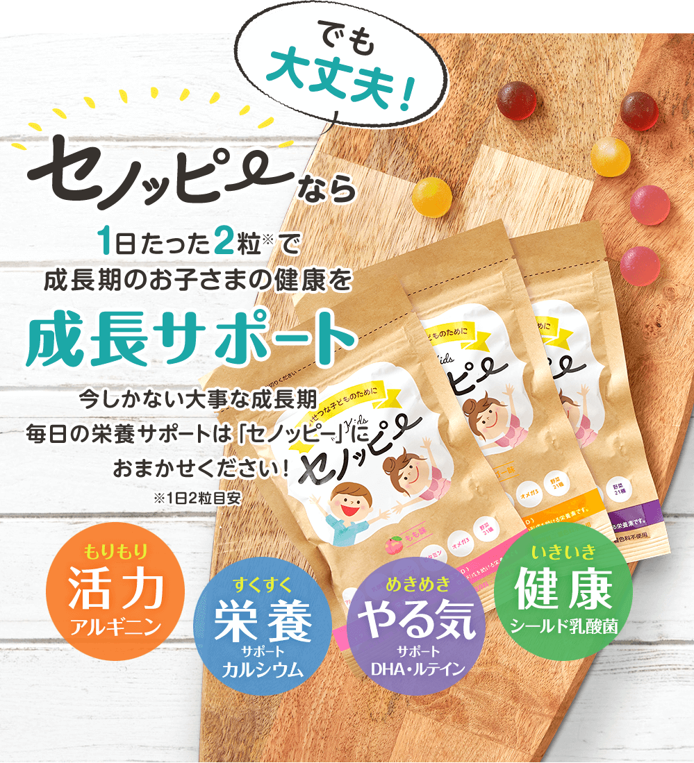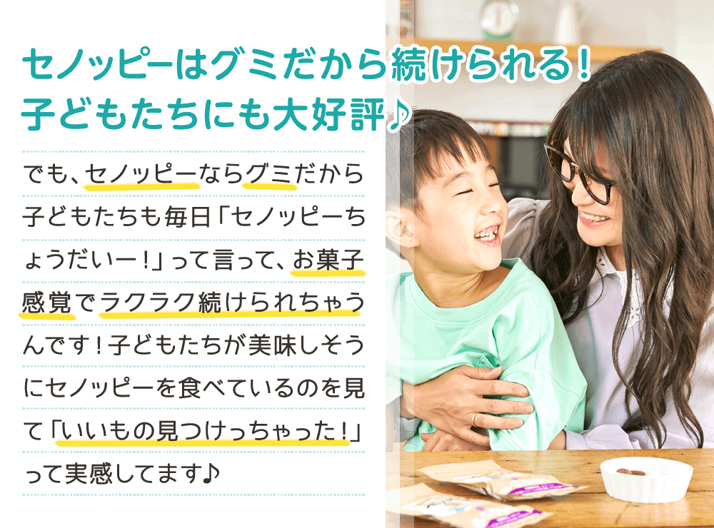 そんなとき、ママ友から「セノッピー」という子ども用栄養補助食品を紹介されました。「無添加で安心だし、子どもが喜んで食べてくれるよ」と勧められ、半信半疑で試してみることに。
